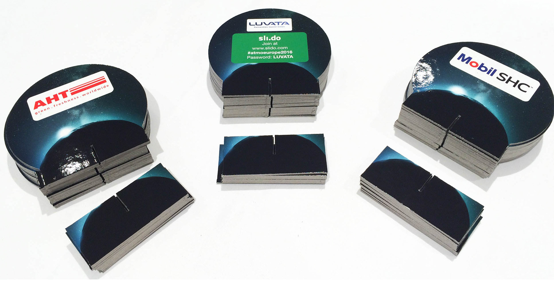 Print material for the event such as badges, folders, magazines and cards