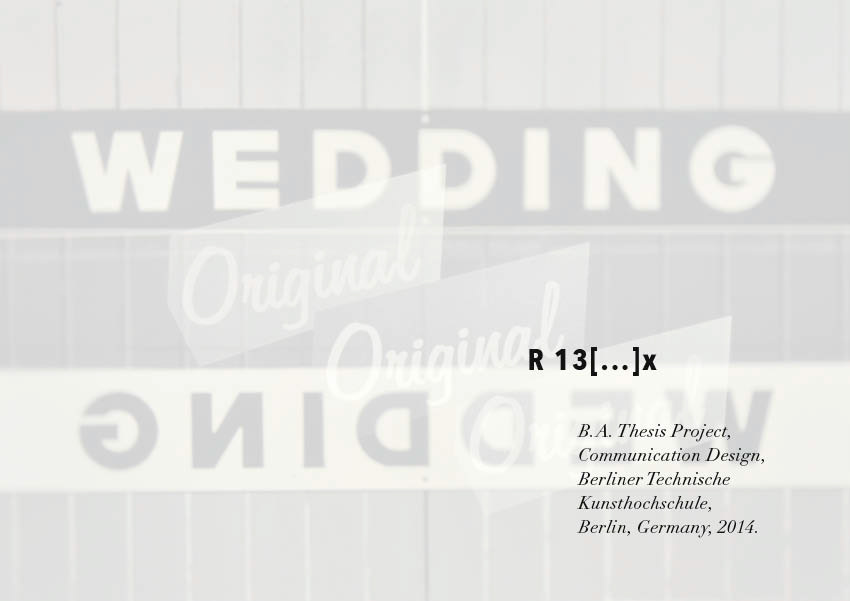 R 13 is a project about the identity of the Berlin borough Wedding.
